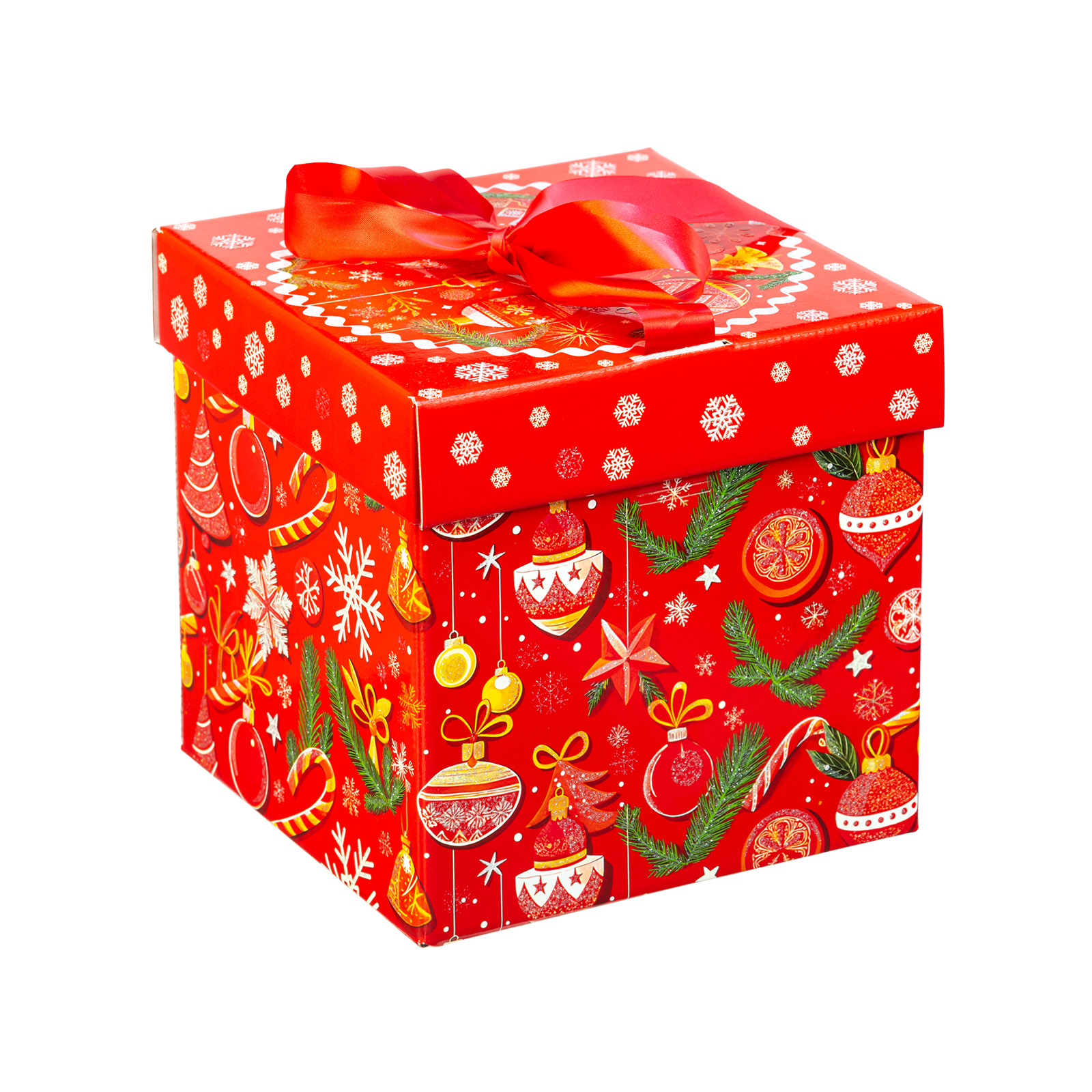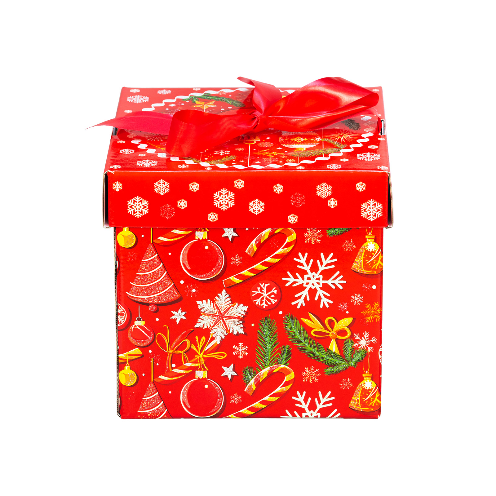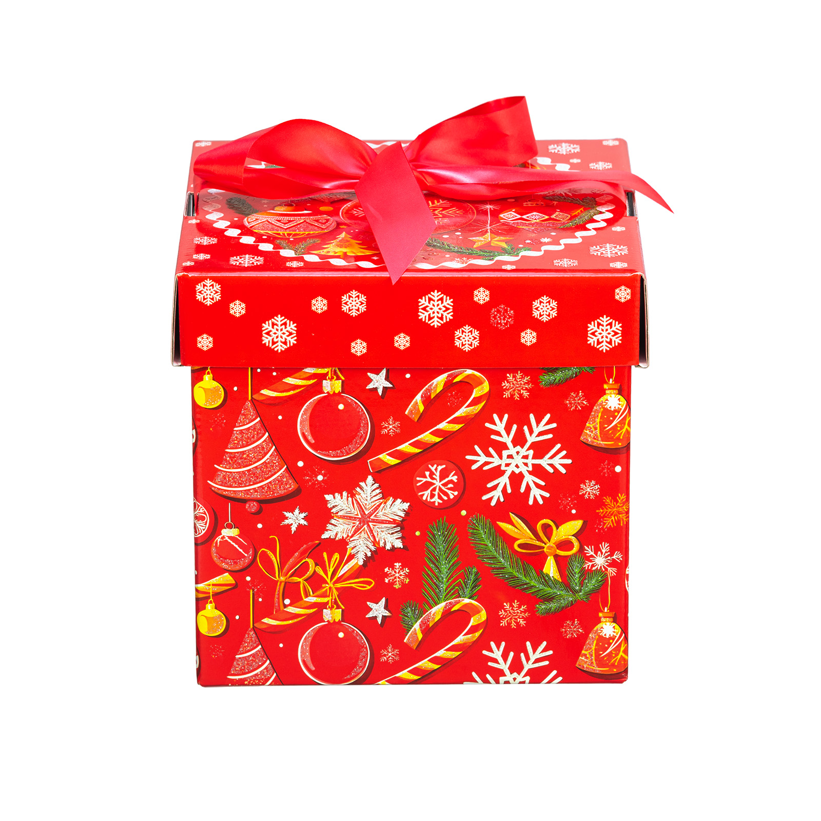 Премиальный подарочный набор, который идеально подойдет в качестве презента взрослому сластене. Такой сладкий подарок можно смело вручить школьному педагогу, коллеге или руководителю - восторг гарантирован. Подарочная упаковка выполнена в виде красного куба с алым бантом на крышке. Сам куб со всех сторон украшен разнообразными новогодними узорами. Изнутри подарок также прекрасен: в его состав входят премиальные сладости от ведущих кондитерских предприятий. С таким подарком любое вечернее чаепитие превратится в самый настоящее торжество!