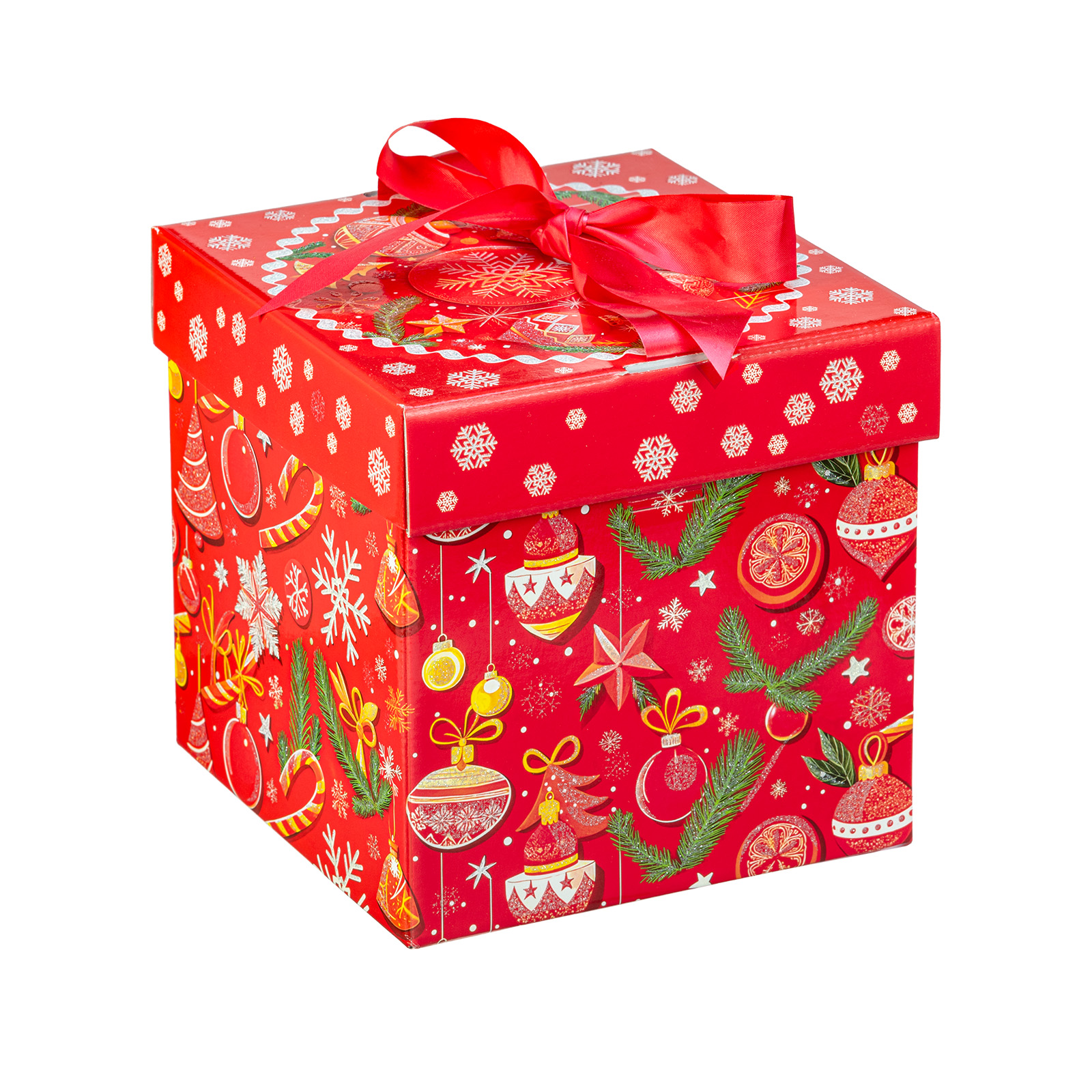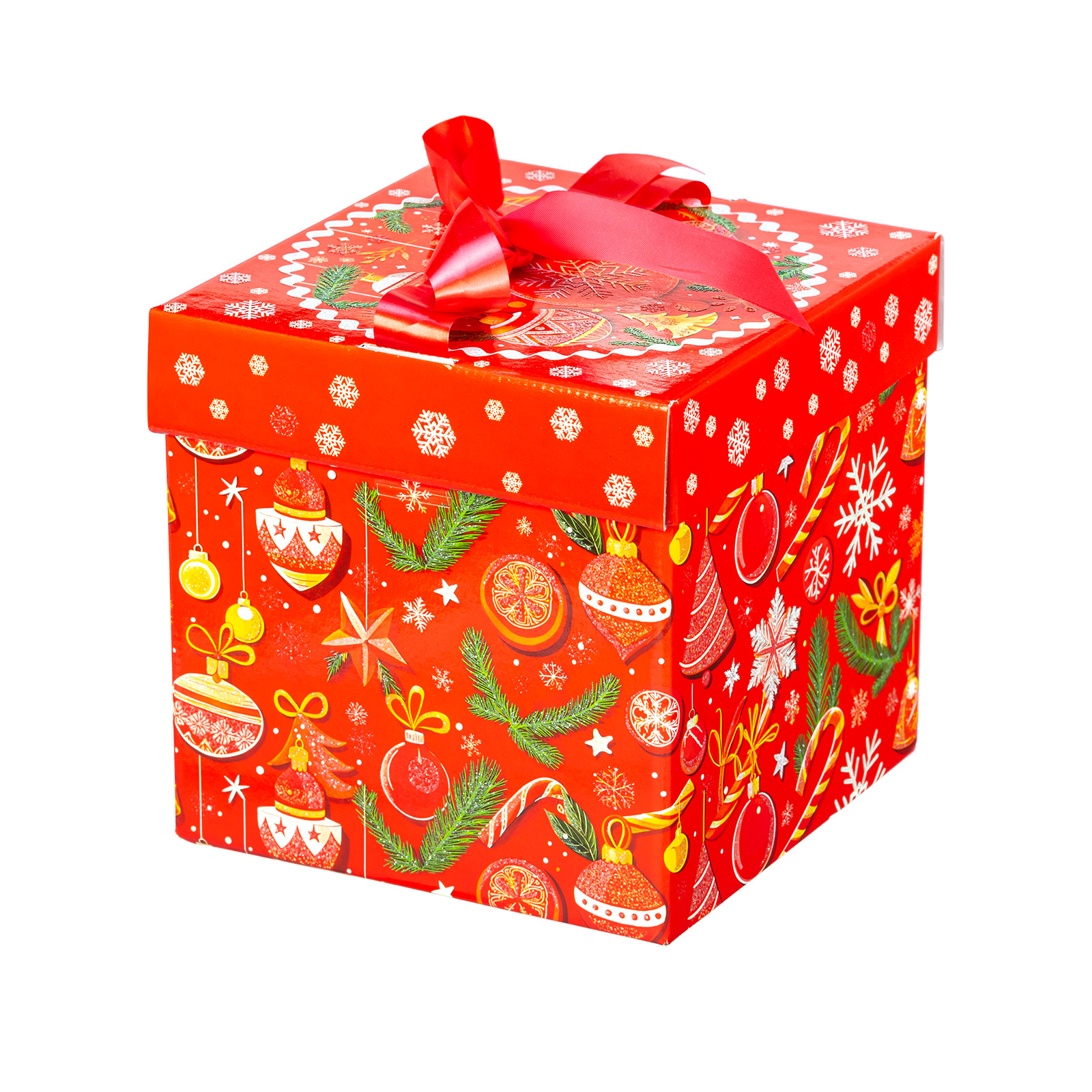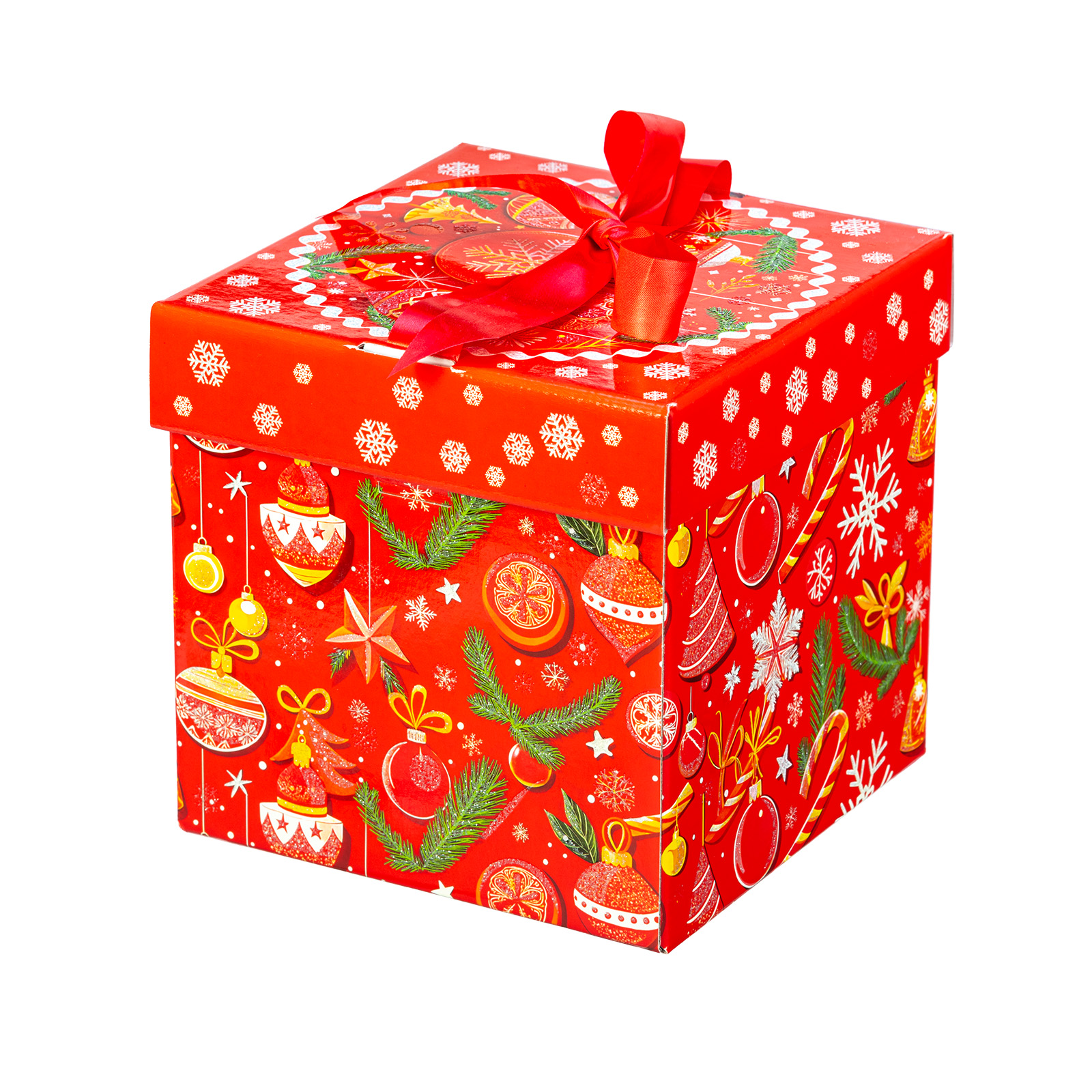Премиальный подарочный набор, который идеально подойдет в качестве презента взрослому сластене. Такой сладкий подарок можно смело вручить школьному педагогу, коллеге или руководителю - восторг гарантирован. Подарочная упаковка выполнена в виде красного куба с алым бантом на крышке. Сам куб со всех сторон украшен разнообразными новогодними узорами. Изнутри подарок также прекрасен: в его состав входят премиальные сладости от ведущих кондитерских предприятий. С таким подарком любое вечернее чаепитие превратится в самый настоящее торжество!
