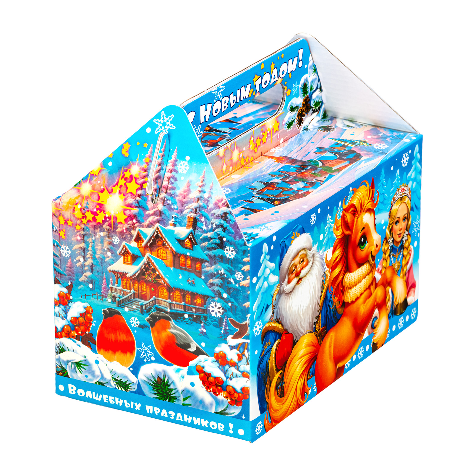Интересный вариант новогоднего подарка – «Огоньки (Полезный состав)». Он представлен в разделе Картон. Отлично подойдет на подарок в 2026 году с символом Лошадь. Внутри такого презента находится кондитерский набор весом 1000 граммов.