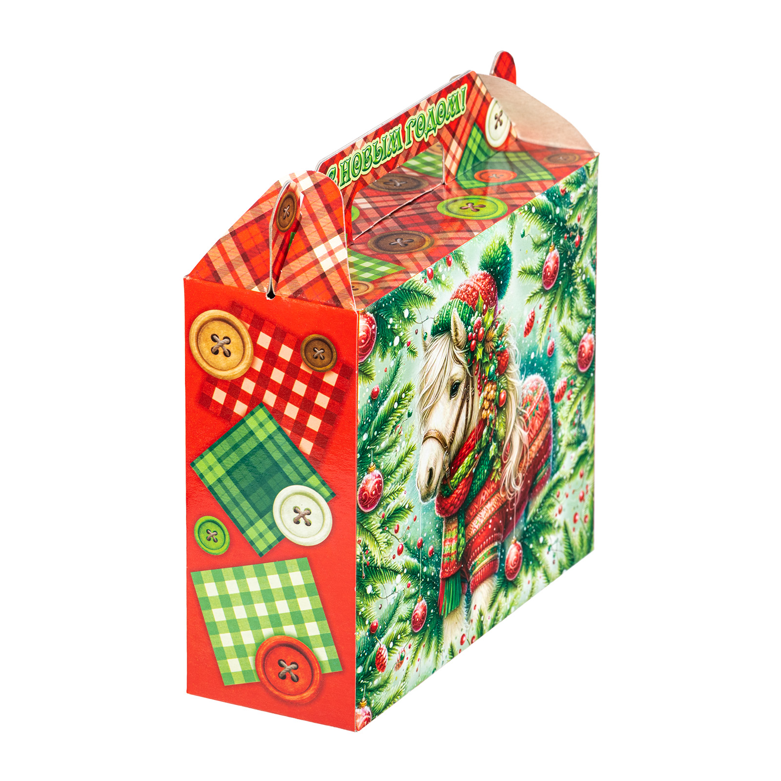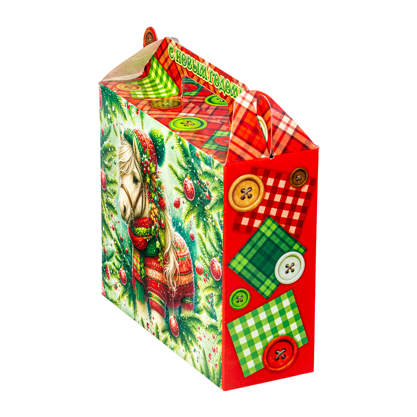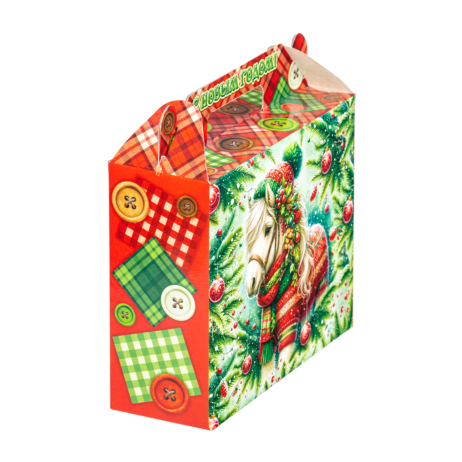 Интересный вариант новогоднего подарка – «Пуговка (Полезный состав)». Он представлен в разделе Картон. Отлично подойдет на подарок в 2026 году с символом Лошадь. Внутри такого презента находится кондитерский набор весом 500 граммов.