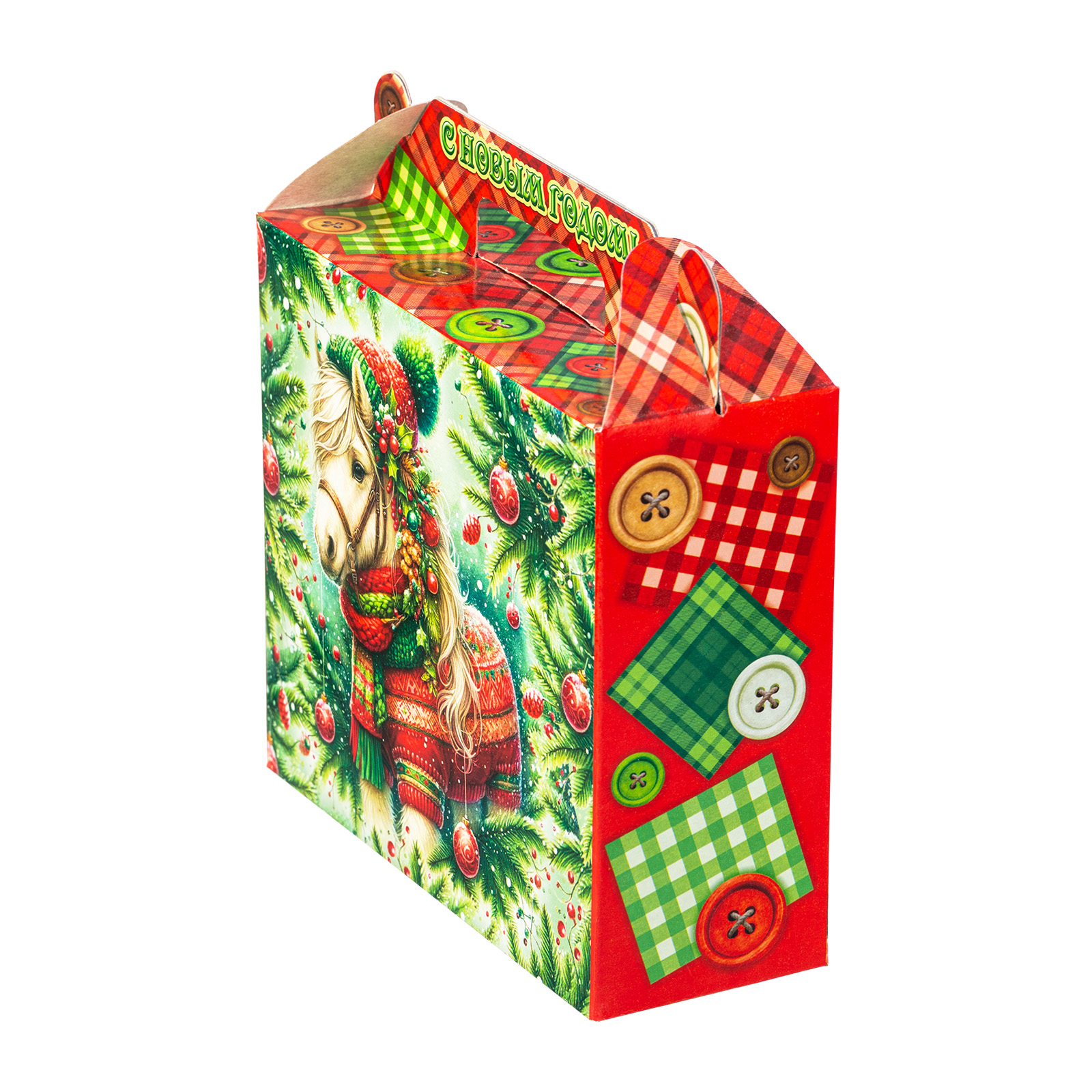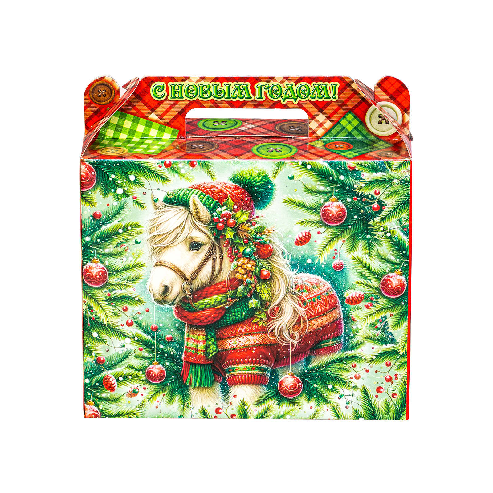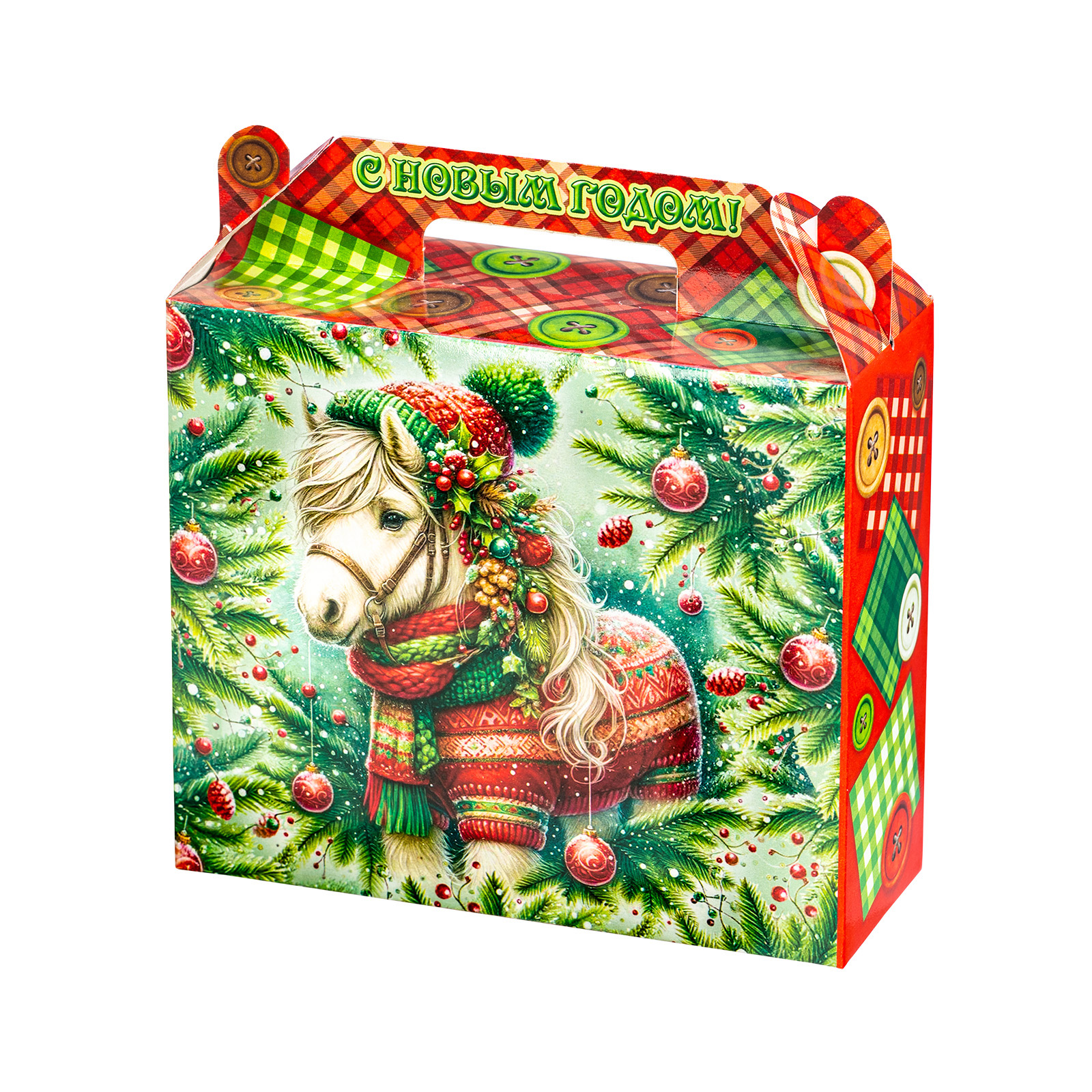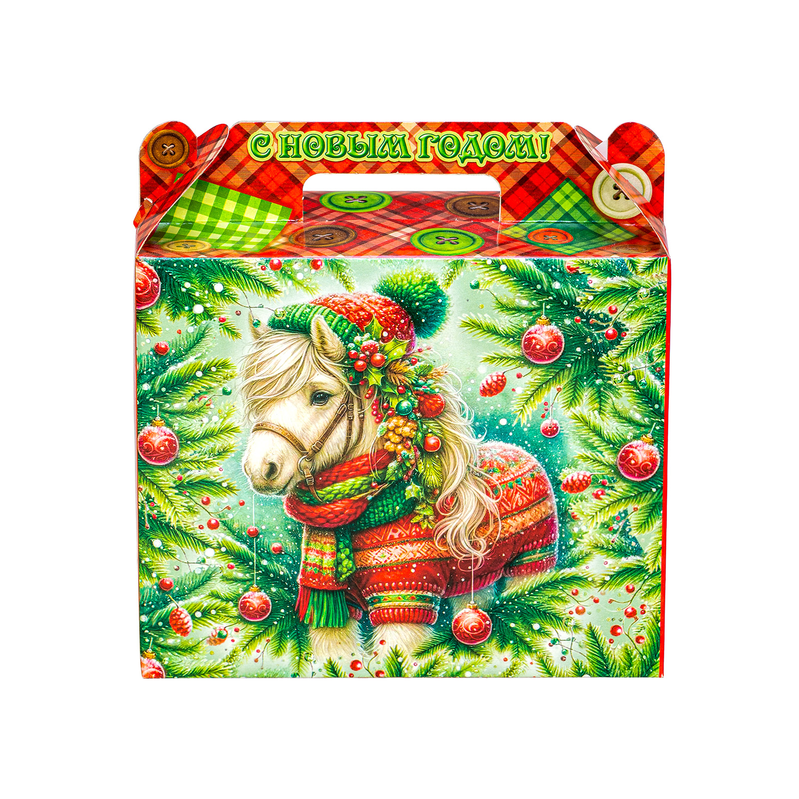 Интересный вариант новогоднего подарка – «Пуговка (Полезный состав)». Он представлен в разделе Картон. Отлично подойдет на подарок в 2026 году с символом Лошадь. Внутри такого презента находится кондитерский набор весом 500 граммов.